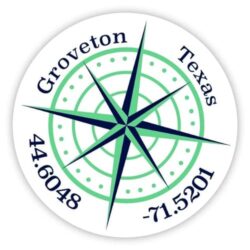 Groveton Texas 2-Inch Vinyl Decal Sticker Latitude Longitude Compass Design
