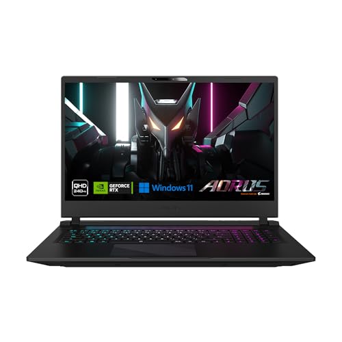GIGABYTE AORUS 17: 17.3″ Thin Bezel QHD 2560×1440 240Hz, NVIDIA GeForce RTX 4070 Laptop GPU 8GB GDDR6, Intel Core i7-13700H, 16GB DDR5 RAM, 1TB SSD, Win11 Home (AORUS 17 BSF-73US654SH),Black